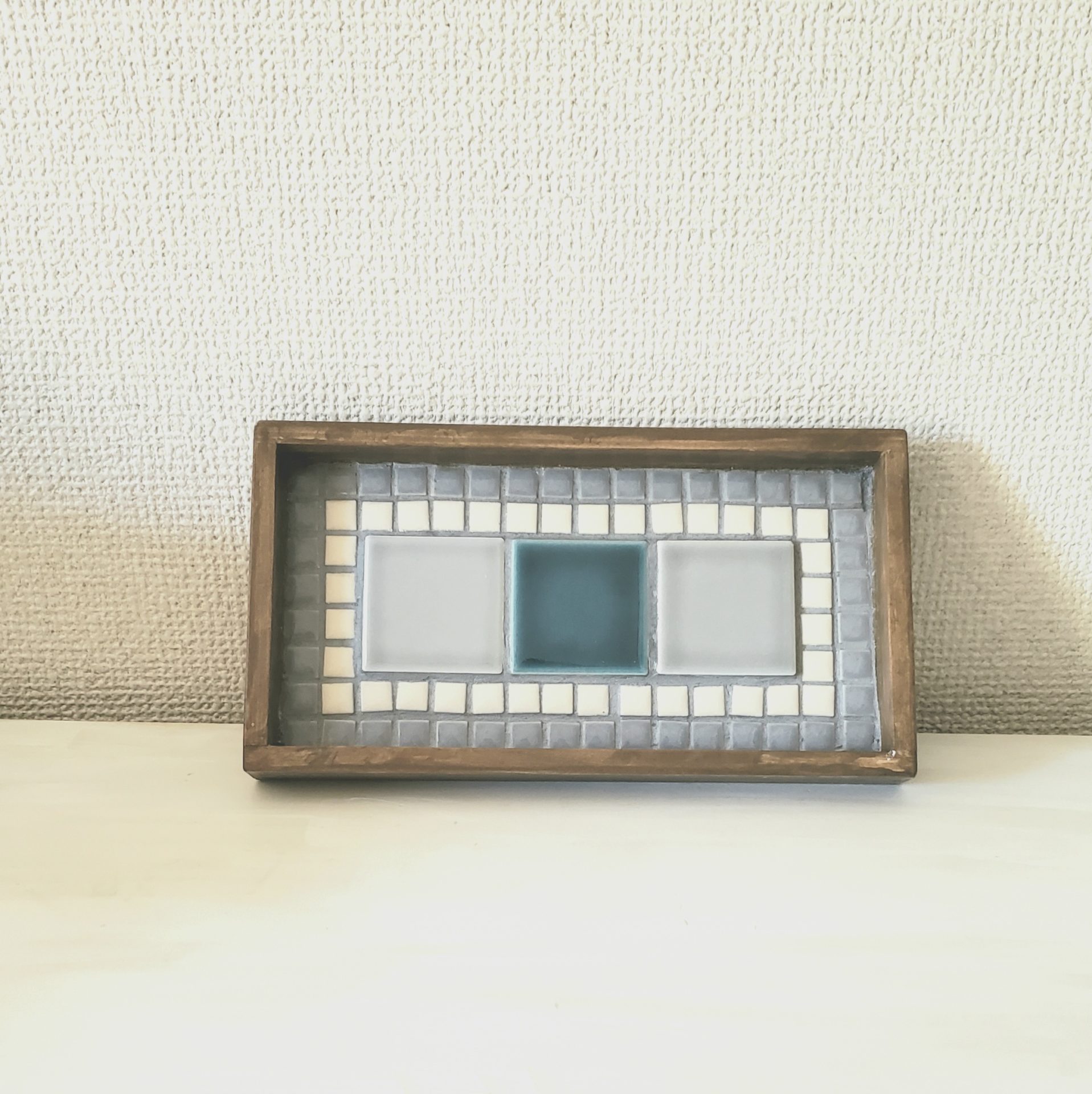 これは初めて作ったタイルトレー。なかなか…うん…目地とかぼこぼこだけど、配色は気に入っている。というか、自分で作ったものなので愛着湧きますわ。