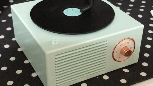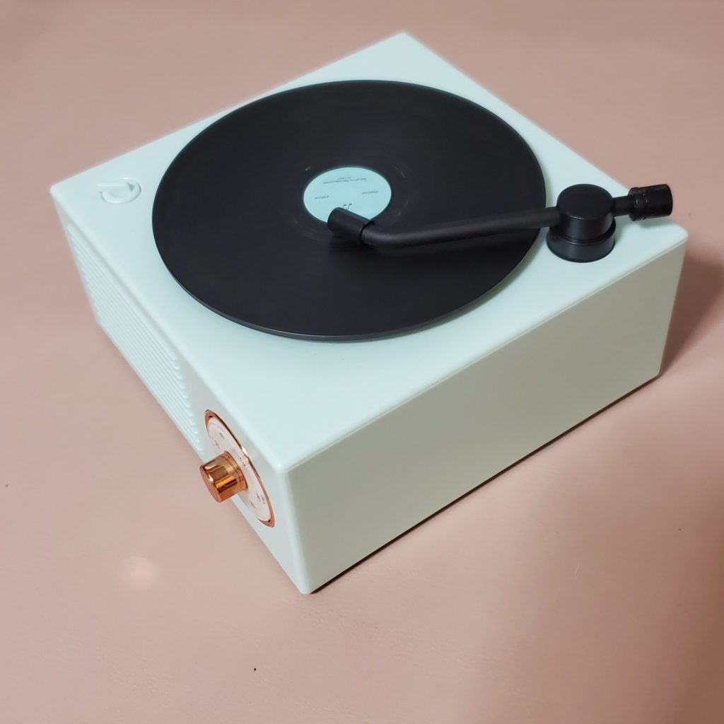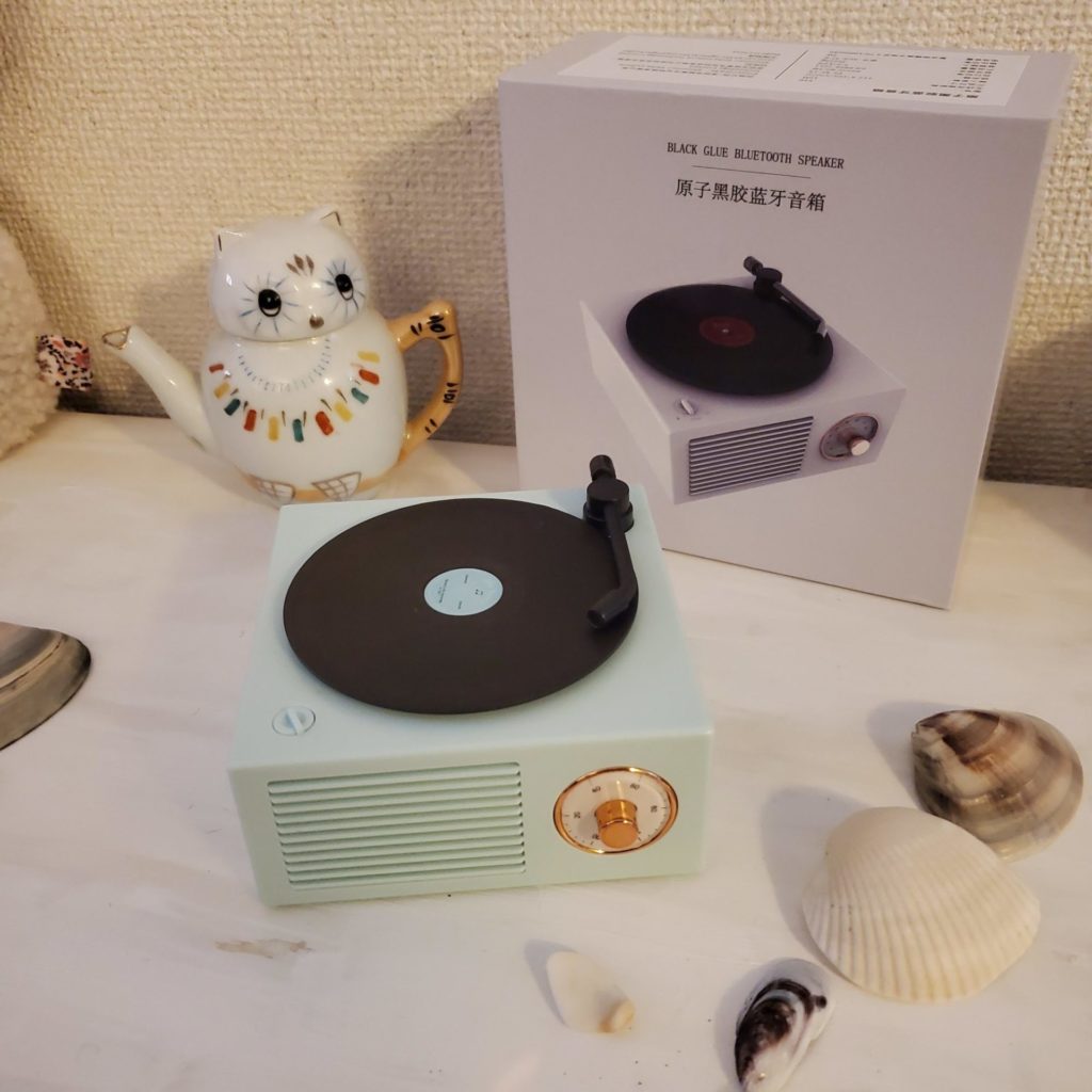 レコードプレーヤー風のBluetoothスピーカーです。ただいま机周りを整えていて、AliExpressで好みの雑貨を色々と探しているのです。こちらは「レトロ」で検索し、偶然見つけたもの。