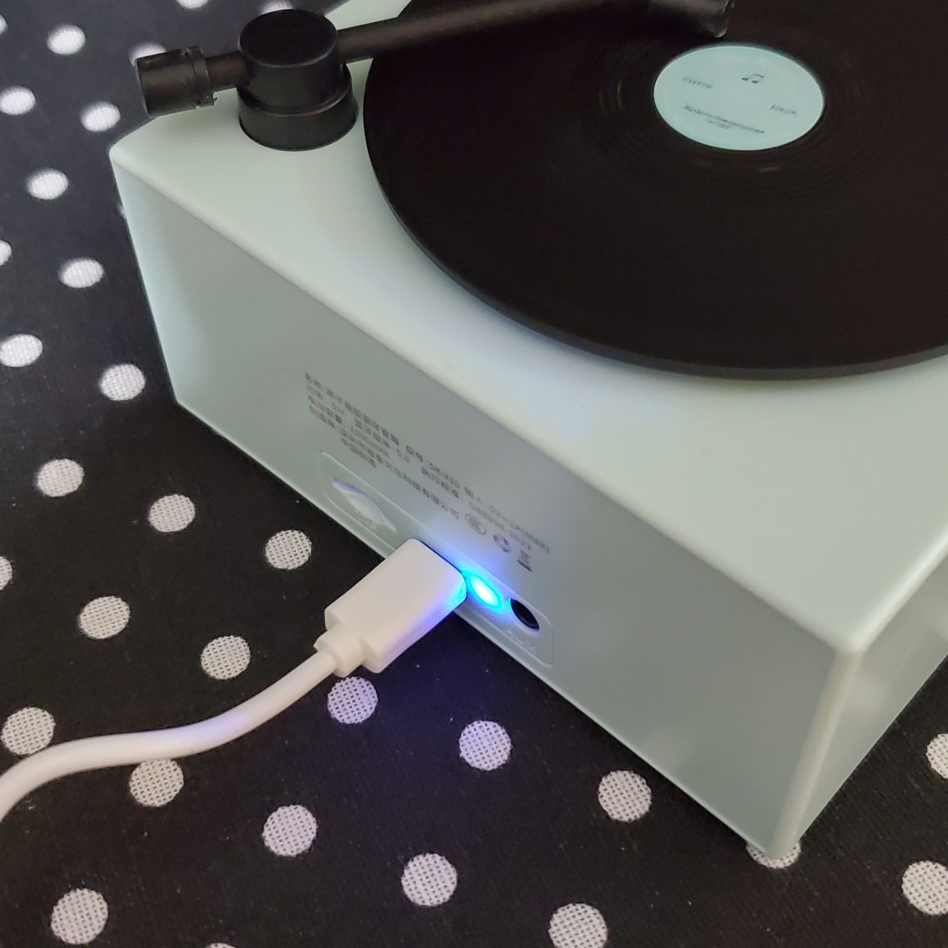 なんと、再生中はレコード部分が回転するのです。か…かわいすぎる…。予期してない動作だったので気絶しそうでした。最高。音質も、プラスチックのように軽い音ではなく、しっかりと高音低音問題なく聞けるレベルでした。しかも、音量調節も優秀でかなり爆音に出来る(しないけど)。